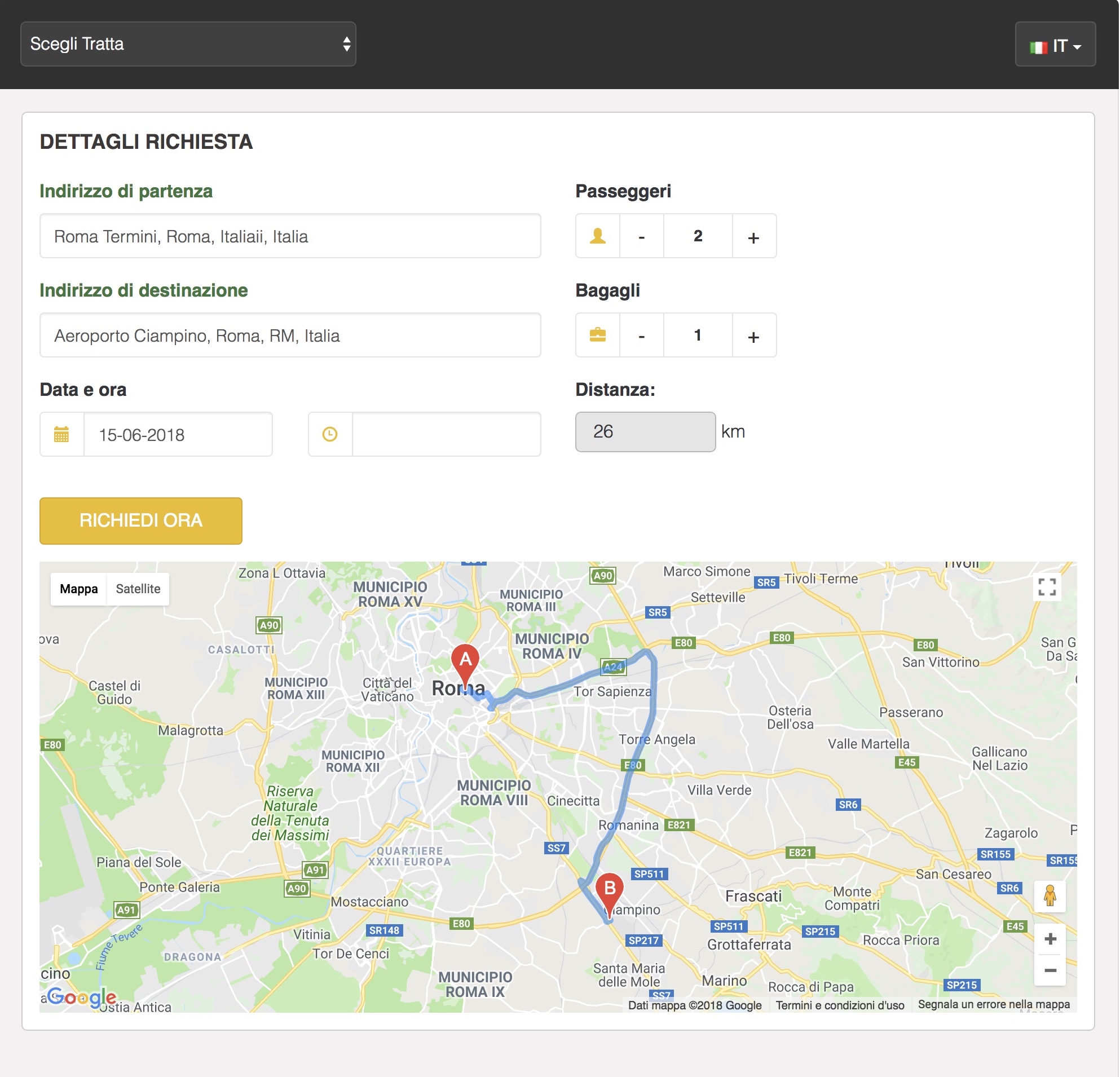 Sistema di gestione delle prenotazioni con opzione di pagamento on-line per Taxi, Noleggio con conducente o similari. Possibilità di pianificare le tariffe per chilometraggio o per persona. Perfettamente integrabile in un qualsiasi sito web proprietario o cms quali wordpress, joomla, ecc…